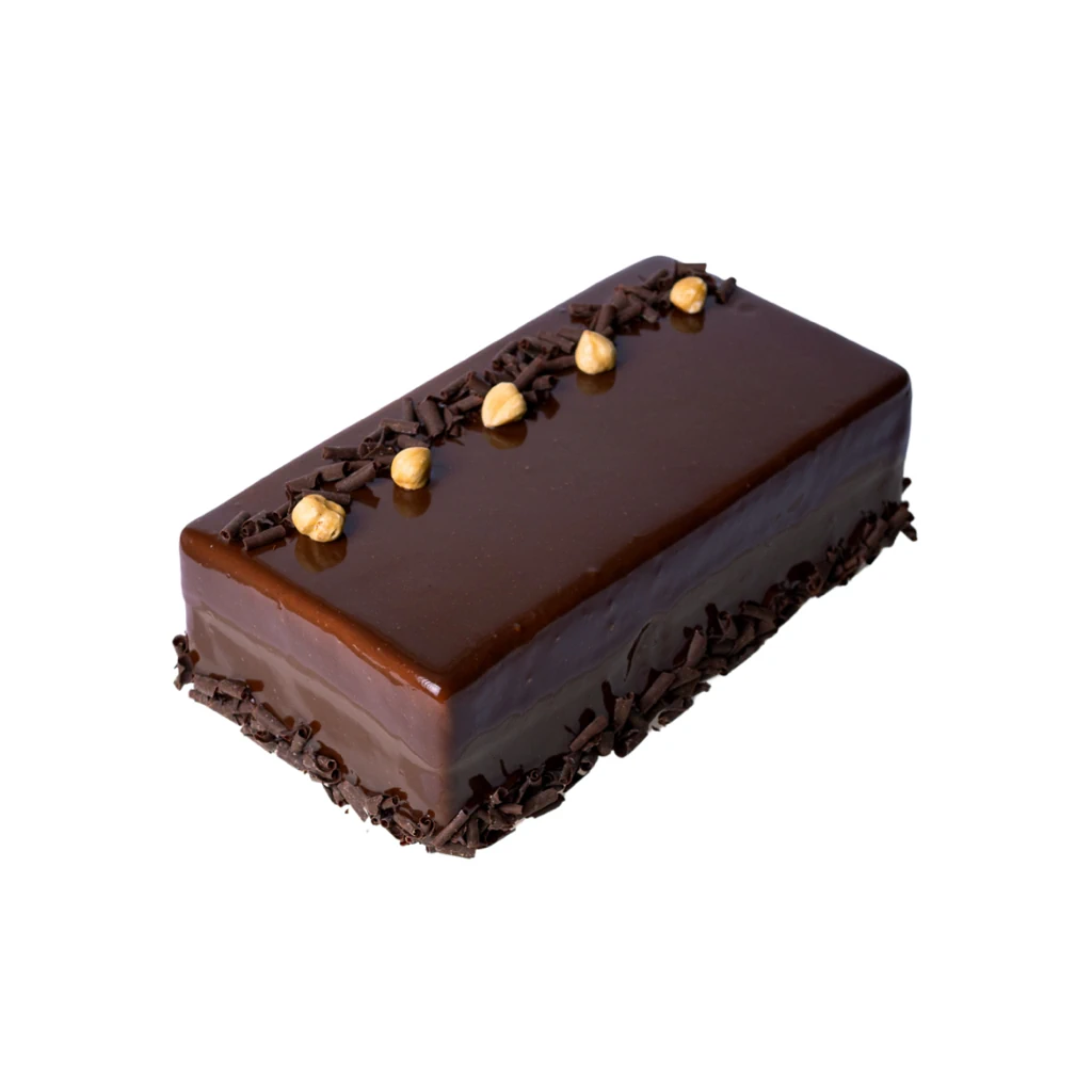 A luscious combination of white sponge cake, rich hazelnut cream and gianduia mousse, rounded off with a fruity note of blackcurrant.